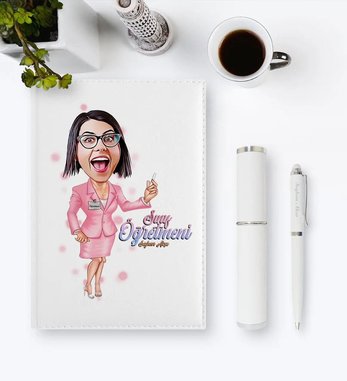 Best Quality Personalized Women 'S Teacher Caricature of 2020 Leather Organizer & Pen Gift set